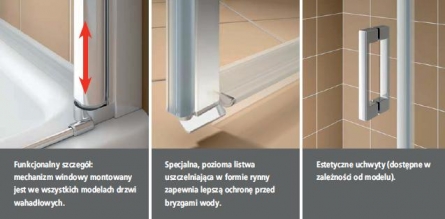 Magnetyczna listwa uszczelniająca na całej wysokości drzwi oraz pozioma uszczelka w kształcie rynny.